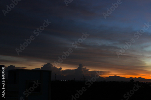 Sunset sky with beautiful clouds with a botanical garden in the backdrop.