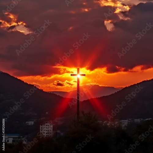 Sunset sky with church cross, Sunset, Holy Church of Jesus Christ