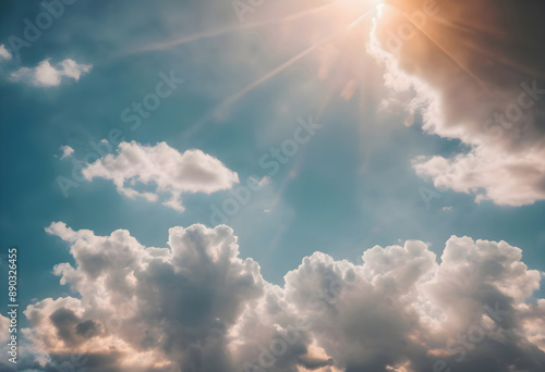 Sunset sky with clouds and sunbeams. Nature background.