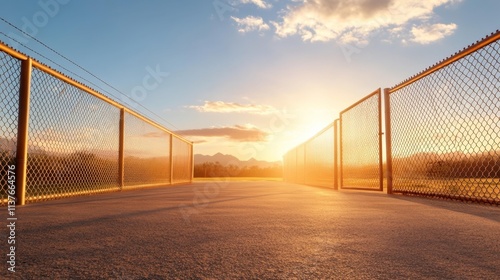Sunset View Through a Fence: A Metaphor for Overcoming Barriers. Generative AI