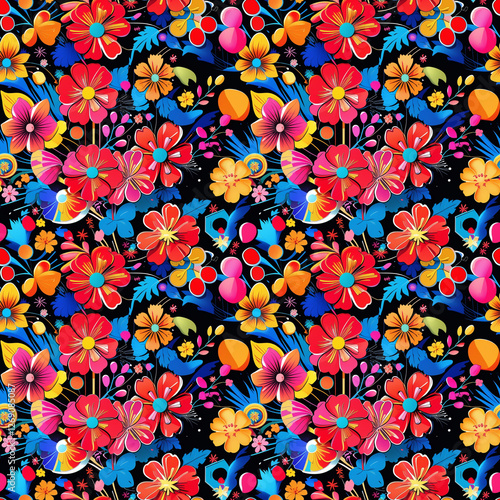Super bright and colorful floral seamless pattern. Vivid summer surface design