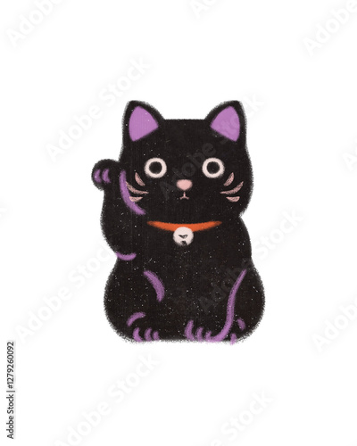 super cute Japan travel theme icons hand-drawn cultural trendy minimalist Japanese aesthetic illustration set new year traditional decoration celebration ornaments gifts black fortune cat