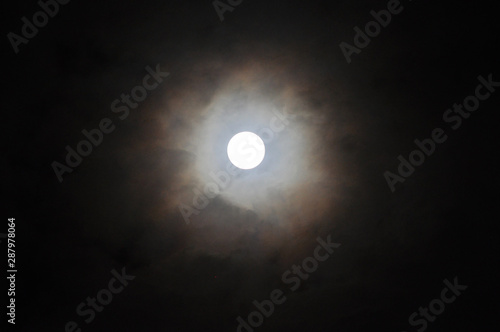 Super Full Moon with clouds at Night, Dramatic cumulus clouds in the moonlight