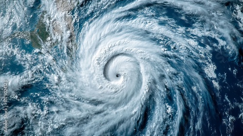 Super Hurricane Eye Over Japan: A Stunning View from Space. AI generated illustration