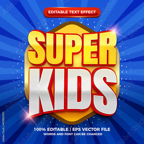 Super kids glossy 3d comic cartoon editable text effect template