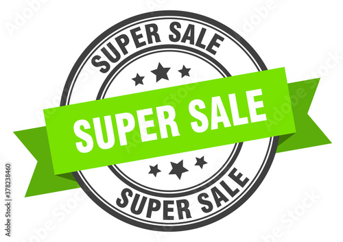 super sale label sign. round stamp. band. ribbon