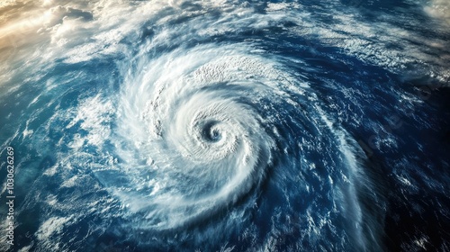 Super Typhoon tropical storm cyclone hurricane tornado over ocean.