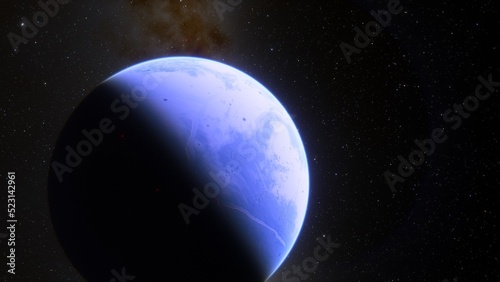 super-earth planet, realistic exoplanet, planet suitable for colonization, earth-like planet in far space, planets background 3d render