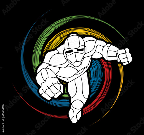 Superhero Robot flying action, Cartoon superhero graphic vector.