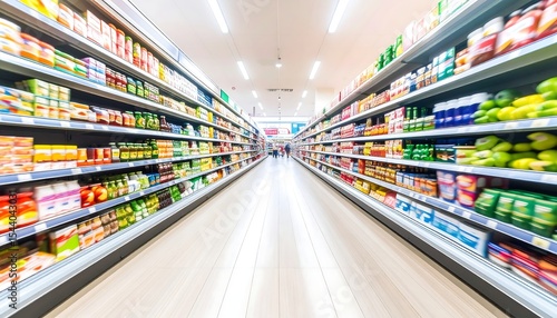 Supermarket aisle with grocery shopping.