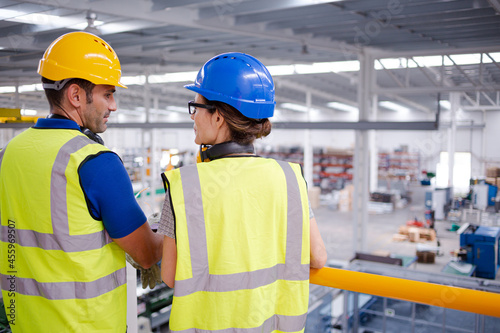 Supervisor and worker talking in steel factory