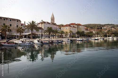 Supetar port with small fishing boats, biggest town on Brac island in Croatia