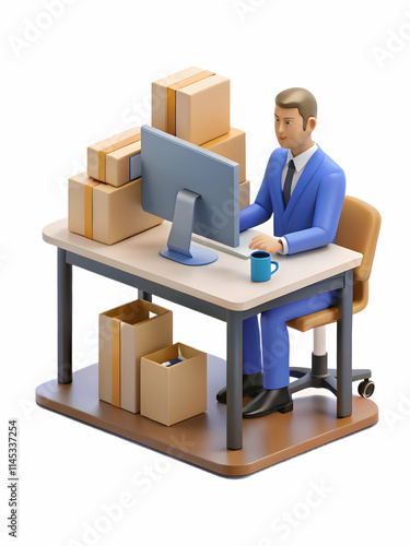 Supply chain manager reviewing logistics software concept as Supply chain manager reviewing logistics software on computer in sleek office symbolizing the marginal cost of logistics with ample copy sp