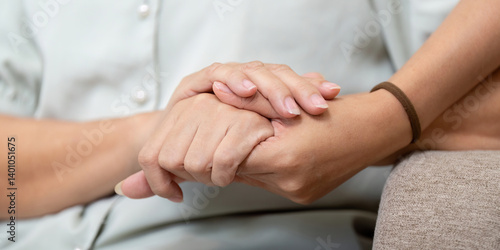 Support and Togetherness. A mother and daughter holding hands to express care and connection.