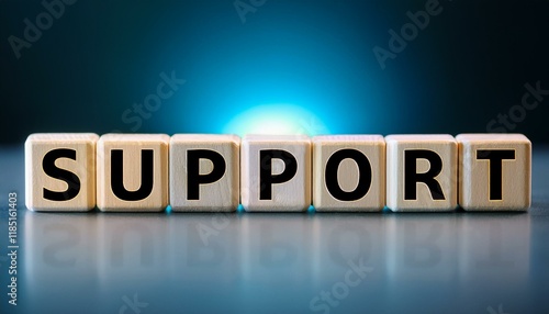 SUPPORTの英単語の文字が書かれたキューブブロック。aiで生成