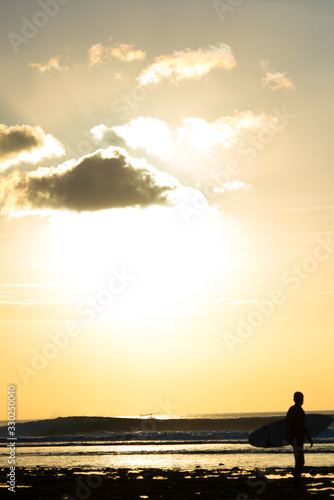 Surfer enjoying the sunset after a surf session