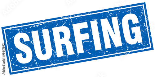 surfing blue square grunge stamp on white