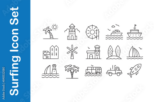 Surfing Icon Set with editable vector.