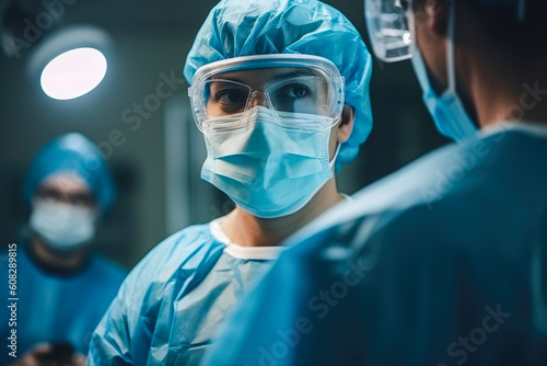 Surgeon in uniform working in the operating room in a hospital, medical profession, saving lives. Generative AI