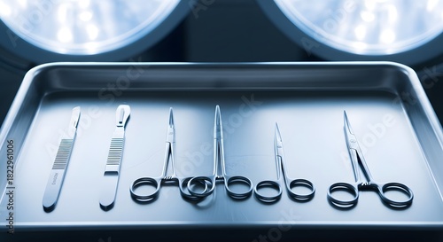 Surgical Instruments Arranged on a Tray in a Sterile Operating Room Environment