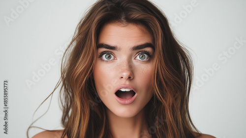 Surprised woman's close up portrait in the studio