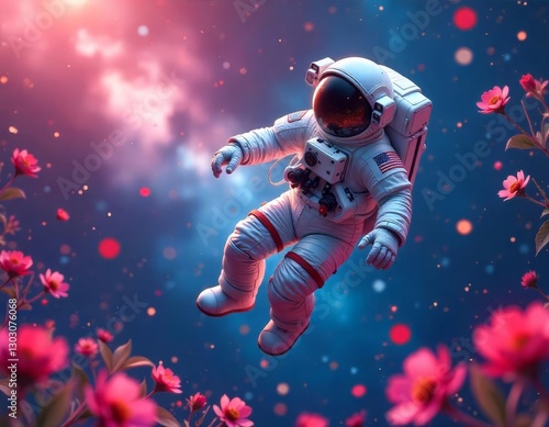 surreal astronaut floating in a vibrant cosmic for 12 april Cosmonautics Day
