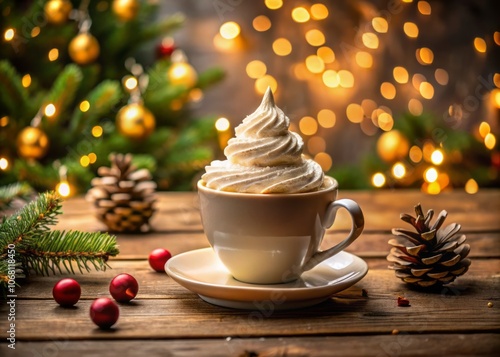 Surreal Coffee Delight: Creamy Christmas Tree on Table, Capturing the Magic of the Holiday Season with a Whimsical Touch and Cozy Atmosphere for Festive Decor Inspiration