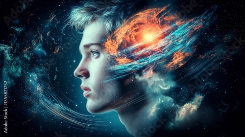 Surreal Cosmic Portrait Man s Mind Galaxy Dreamscape Fantasy Art