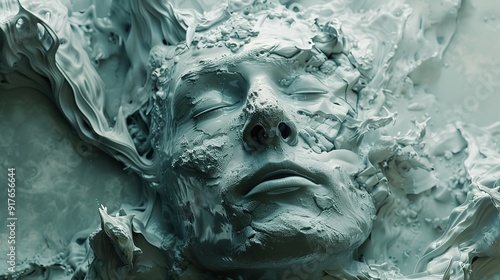 Surreal Digital Art Piece Features a Mans Face in a Dreamlike Setting