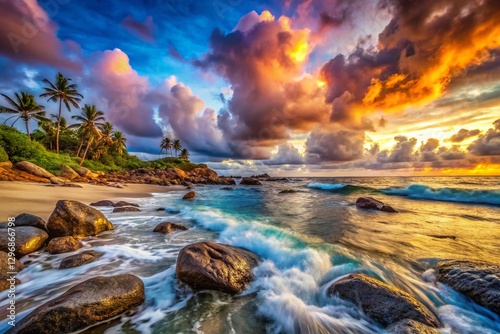Surreal Fiji Rocky Beach: Dreamlike Coastal Landscape with Vibrant Colors