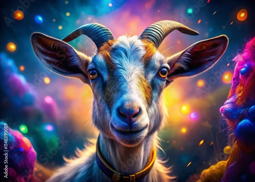 Surreal Goat Bleating Closeup - Mystical Farm Animal Photography