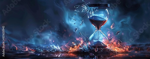 Surreal illustration of an hourglass with fiery and icy elements, symbolizing the passage of time and contrasting forces.