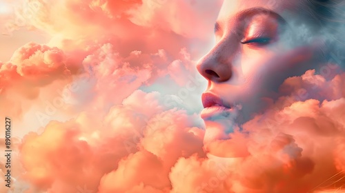 Surreal imagery of a serene female face