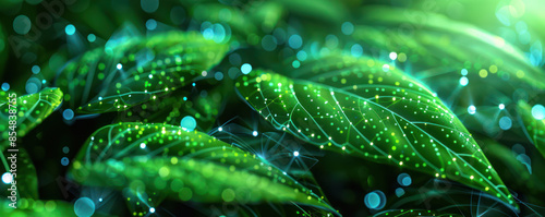 Surreal Nature Digital Art Representation of Lush Greenery with Luminescent Patterns in a Dreamlike, Mystical Forest Setting