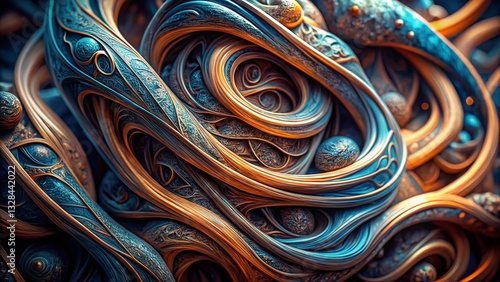 Surreal Organic Blue Brown Twisted Sculpture Closeup Abstract Art