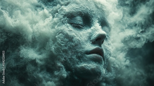 Surreal Portrait: A Dreamlike Face Emerging from Smoke