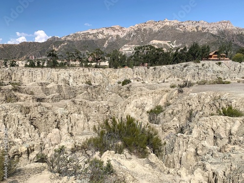 Surreal rocky landscape of Moon Valley Valle de La Luna in La Paz, Bolivia.