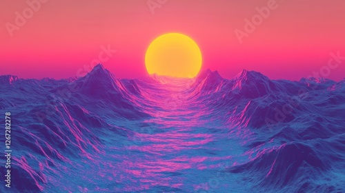 Surreal Sunset Landscape with Vibrant Pink and Purple Hues