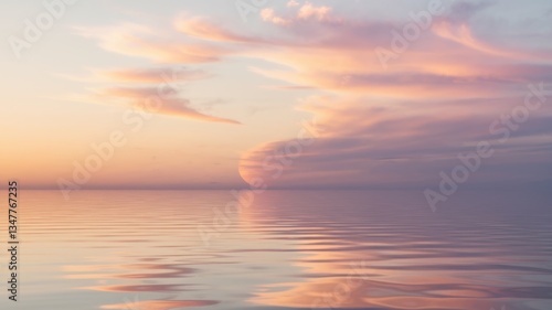 Surreal Sunset Over Calm Ocean – Peach, Lilac, and Blue Gradient