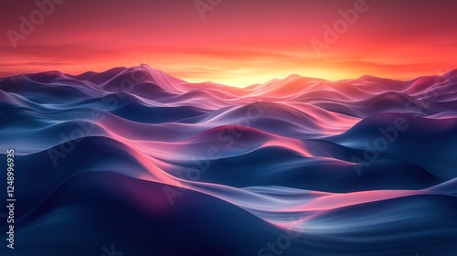 Surreal sunset over vibrant, undulating hills.