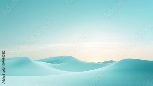 Surreal Turquoise Desert: Abstract Morning Landscape with Sand Dunes Rolling under a Gradient Sky