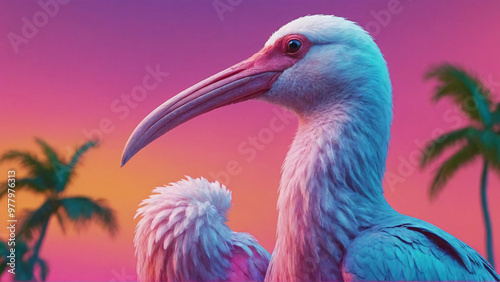 Surreal Vaporwave Bald Ibis, A Bold Take on Nature