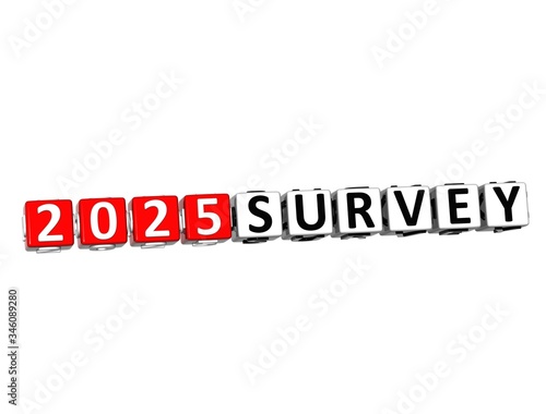 Survey 2025. 3D red-white crossword puzzle on white background. Creative Words.