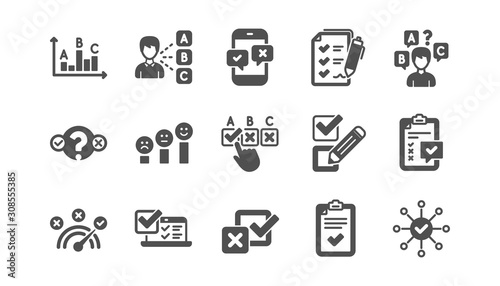 Survey or Report icons. Opinion, Customer satisfaction and Feedback results. Testing classic icon set. Quality set. Vector