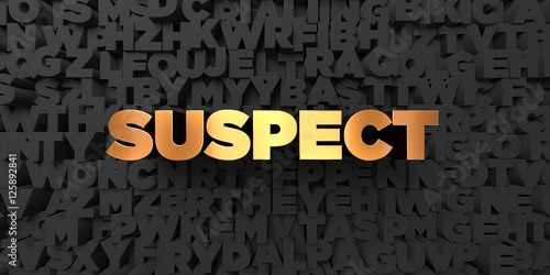 Suspect - Gold text on black background - 3D rendered royalty free stock picture. This image can be used for an online website banner ad or a print postcard.