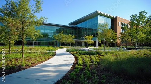 Sustainable Architecture Featuring Eco-Friendly Building Practices, Green Spaces, and Resource-Efficient Design, Ideal for Environmentally Conscious Projects, Green Architecture, and Modern