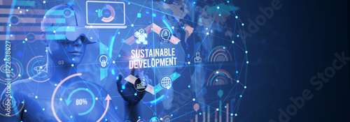 SUSTAINABLE DEVELOPMENT inscription, cloud technology concept. Business, Technology, Internet and network concept. 3d illustration