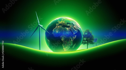 Sustainable Earth with Renewable Energy Symbols and Unity Theme