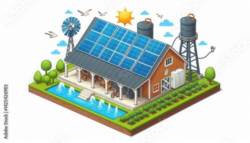 Sustainable farming practices rural area digital illustration eco-friendly environment aerial view