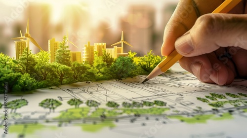 Sustainable Urban Planning in Detailed Illustration